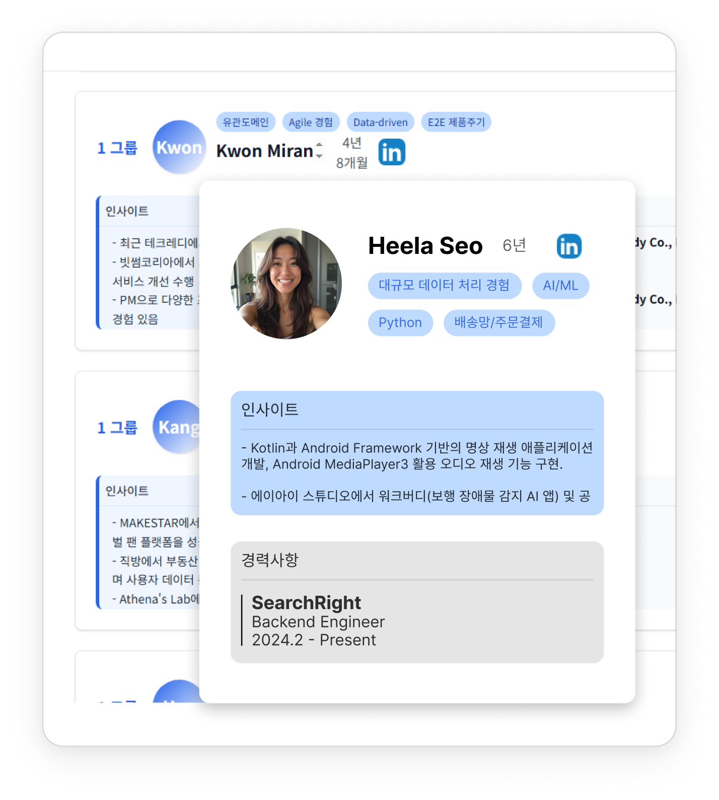 최적합 인재 리스트를 바로 확인할 수 있습니다.