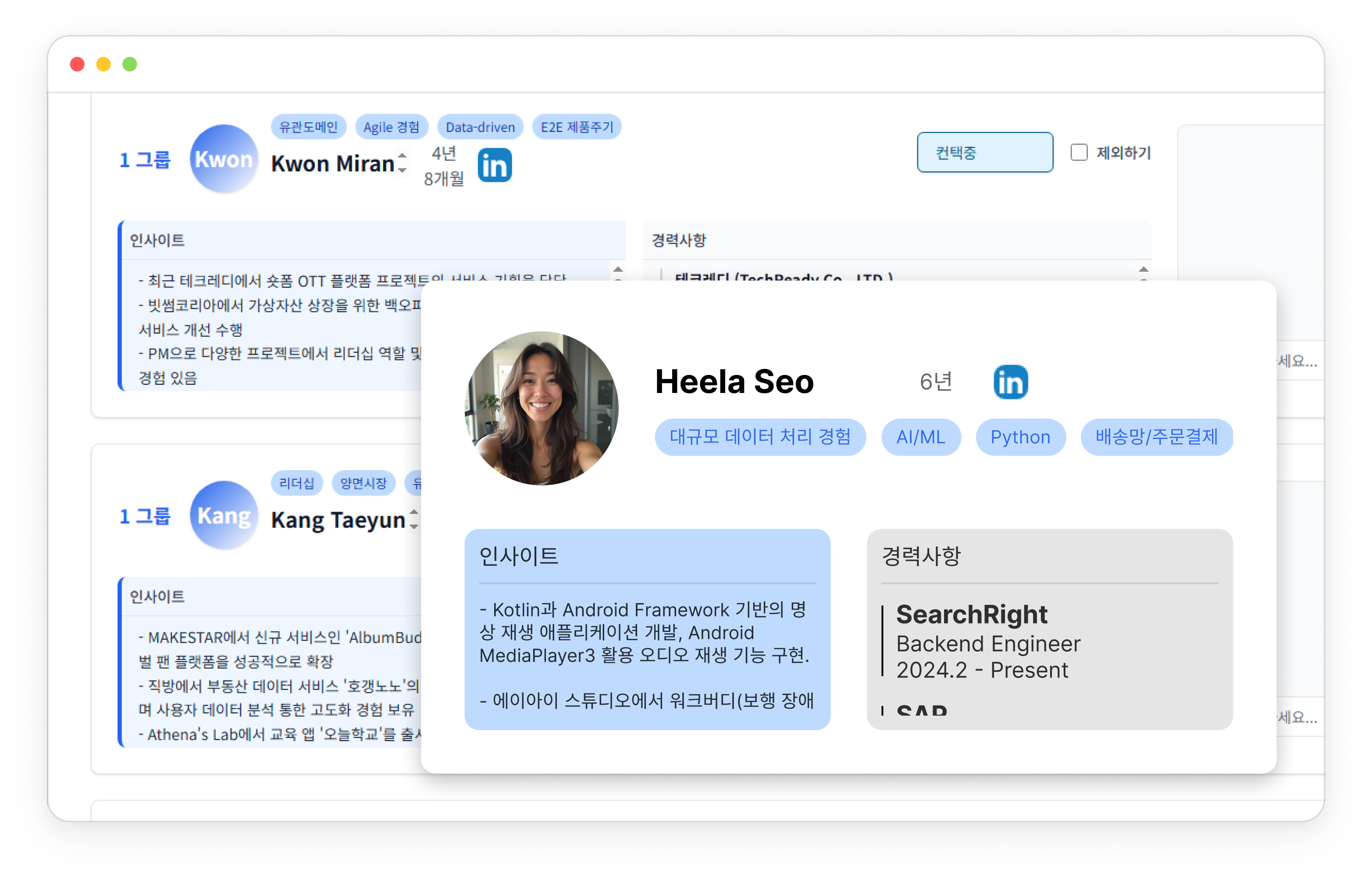 서치라이트AI와 함께 핵심 인재를 만나고 있습니다.